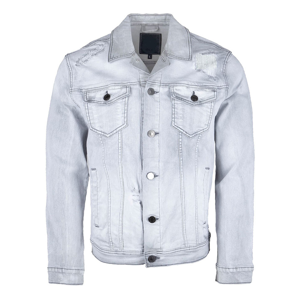 Veste en jean boutonnée à séchage rapide pour hommes 2024 Design avec patchs en chenille Veste d'hiver entretenue OEM personnalisée