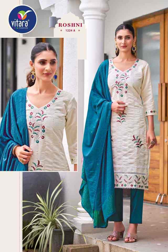 Attractive Roman Silk Kurti Pant & Dupatta