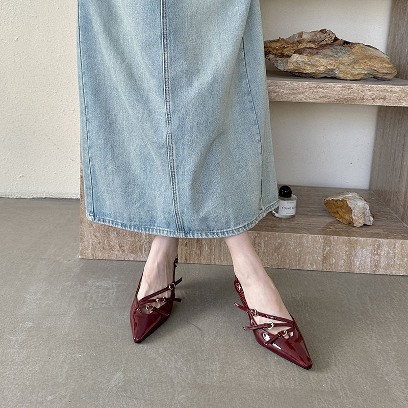 Chaussures à talons tendance printemps 2024, talons hauts pour femmes, sandales simples à bout pointu pour femmes