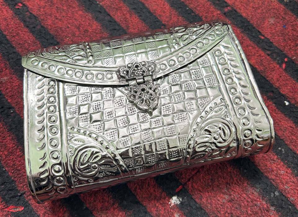 2024 Designer à la mode de luxe en métal pochette à la main argent plaqué Vintage Antique Look mode Feng Shui sculpté artisanat naturel