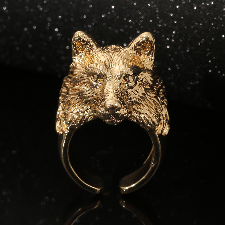 2025 Domineering Hiphop 18K Gold Plated Adjustable Wolf Dollar Sign Open Men's Ring