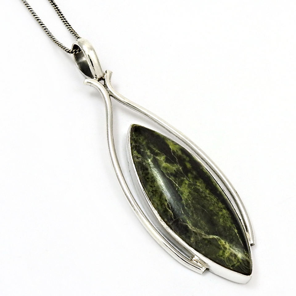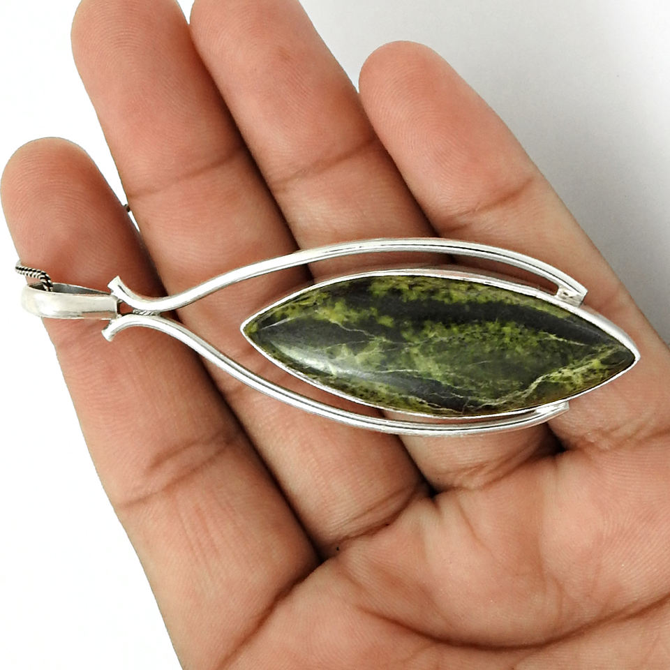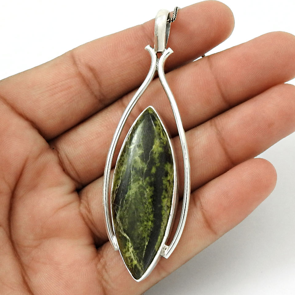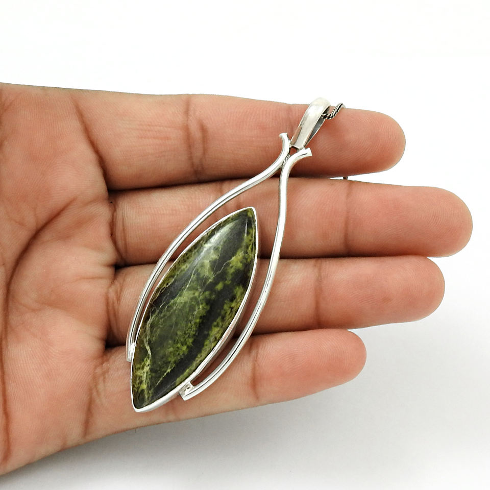 2024 Usine Bijoux Personnalisés 925 Argent Sterling Jaspe Naturel Pierre Précieuse Marquise Forme Élégant Pendentif Prix de Gros Fournisseurs