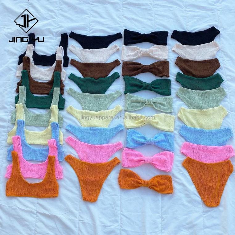 Bikini bandeau extensible texturé de marques célèbres 2024, maillot de bain personnalisé avec logo, bikini en tissu côtelé froissé pour femmes