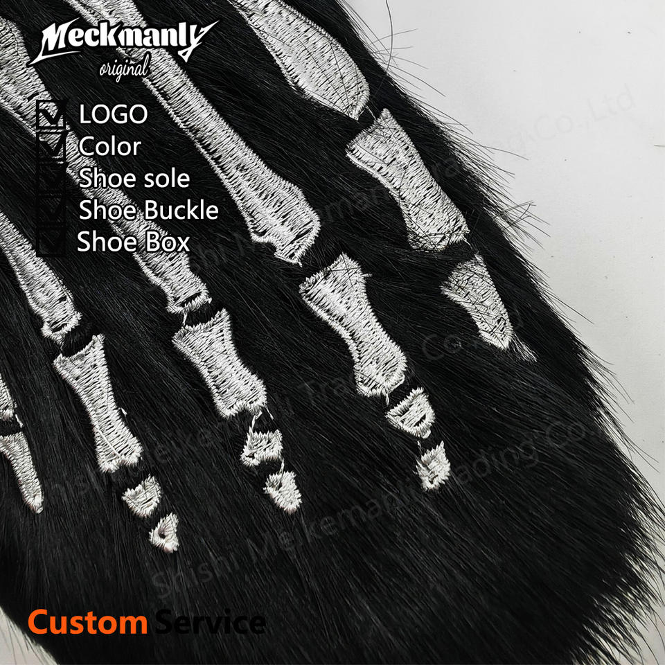 Chaussons plateforme en peluche brodés personnalisés pour hommes, tendance 2024, chaussures décontractées en peluche pour l'hiver