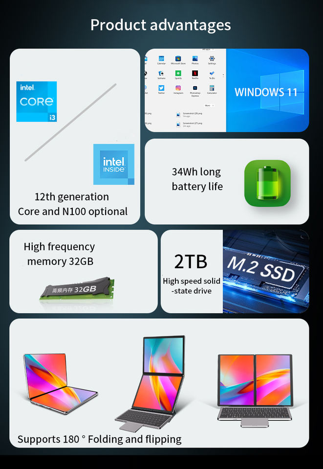 Nom du produit:Ordinateur portable double écran 10,95 pouces