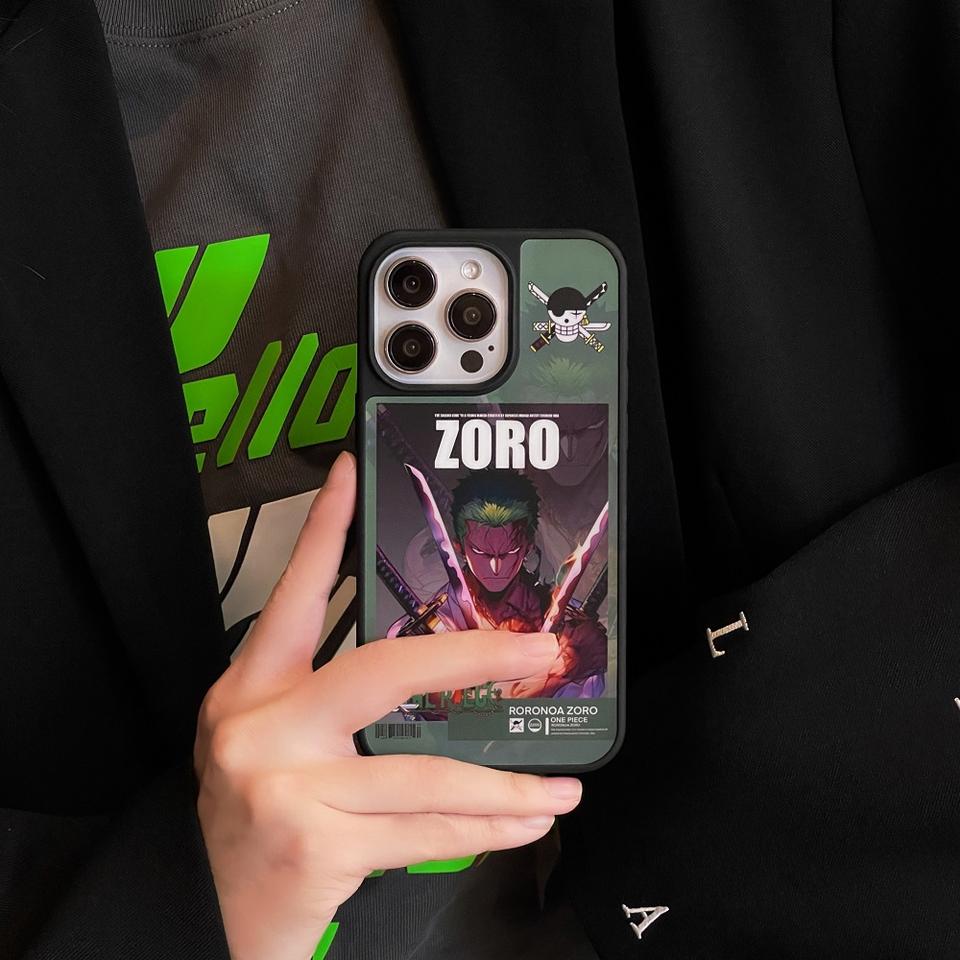 Étui de téléphone pour iPhone 15 Pro Max 13, 2024, quatre côtés, IMD, TPU résistant, bleu métallique, bouton en métal, anime One Piece Luffy Zoro, carton