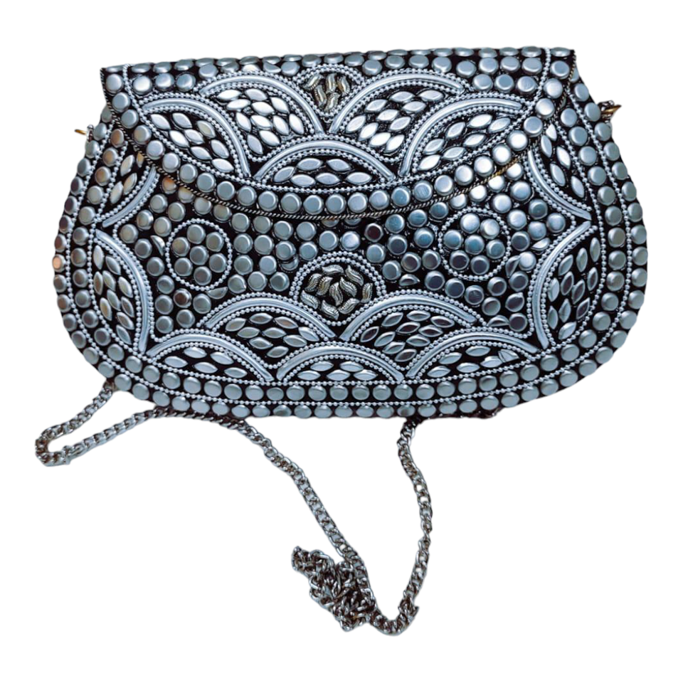 Nouvelle Collection 2024 : Pochette Femme en Laiton et Mosaïque Indienne Faite Main, Doublure en Soie, Design Élégant à Ouverture Simple