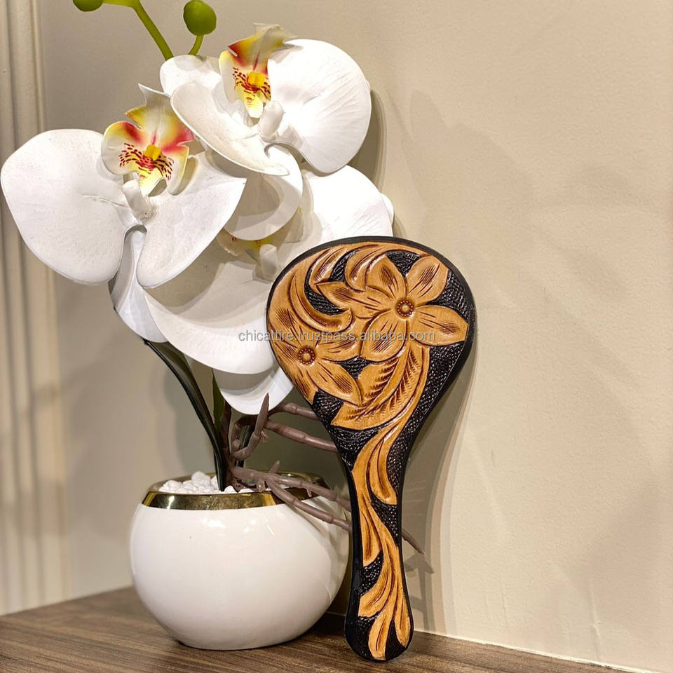 Nom du produit:Élégant miroir tenu dans la main en cuir usiné exquis