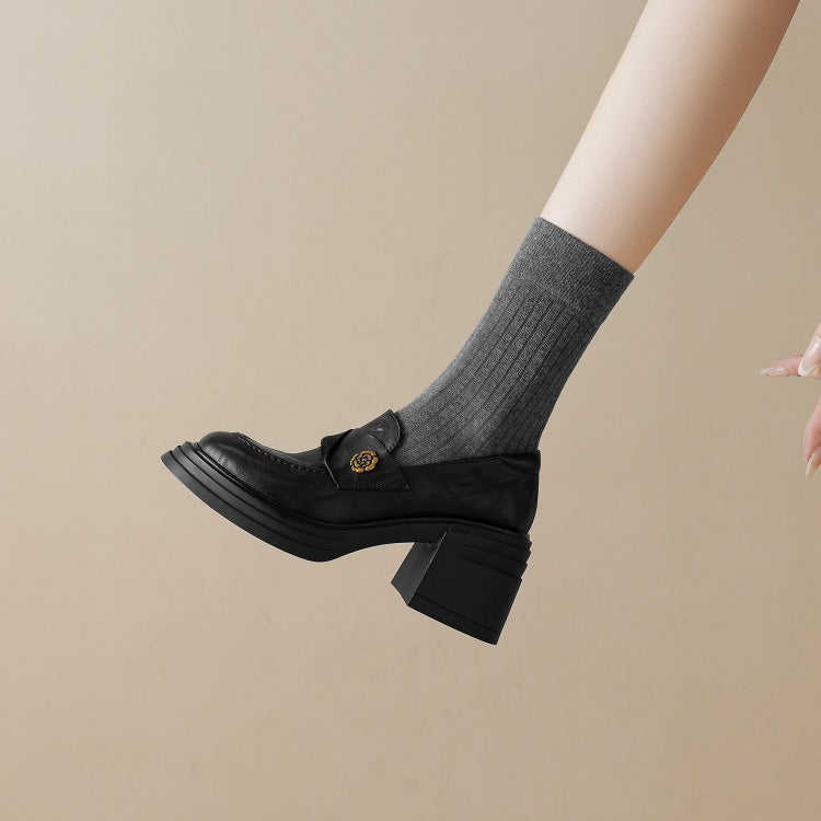 2024 Handmade Camellia Thick Sole Chunky High Heel Loafers Soft and Fluffy Style