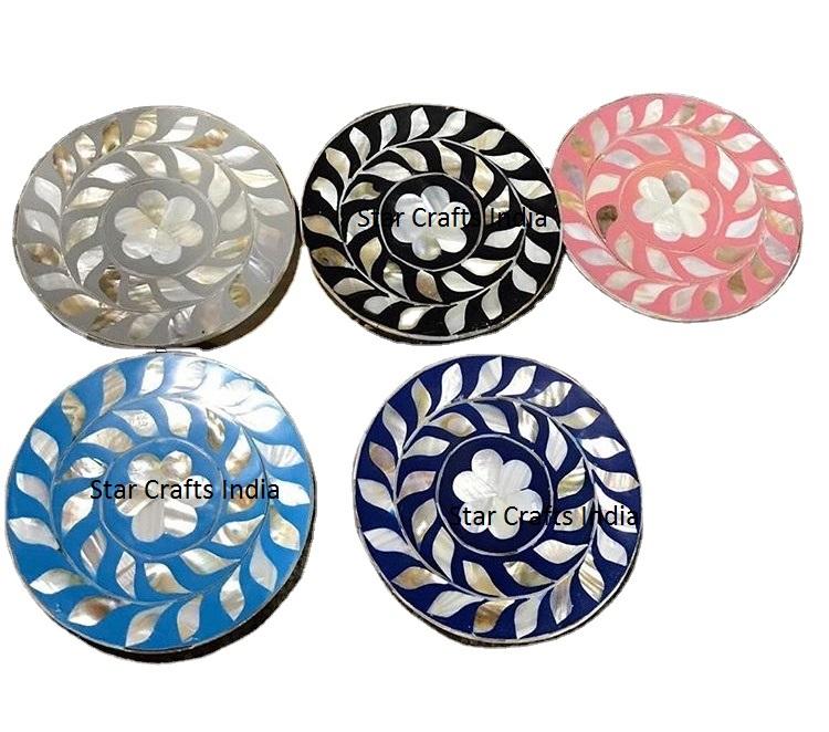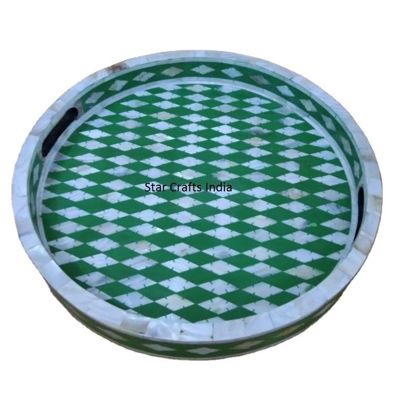 2024 Plateau de service en incrustation d'os fait à la main vert avec logo personnalisé Plateau de forme ronde classique conçu par le fabricant professionnel SCI