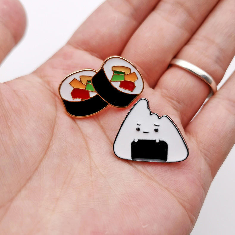 2024 Offre Spéciale métal artisanat personnalisé dessin animé boule de riz épinglettes Kawaii Japense Style alimentaire riz émail broche Sushi pour vêtements