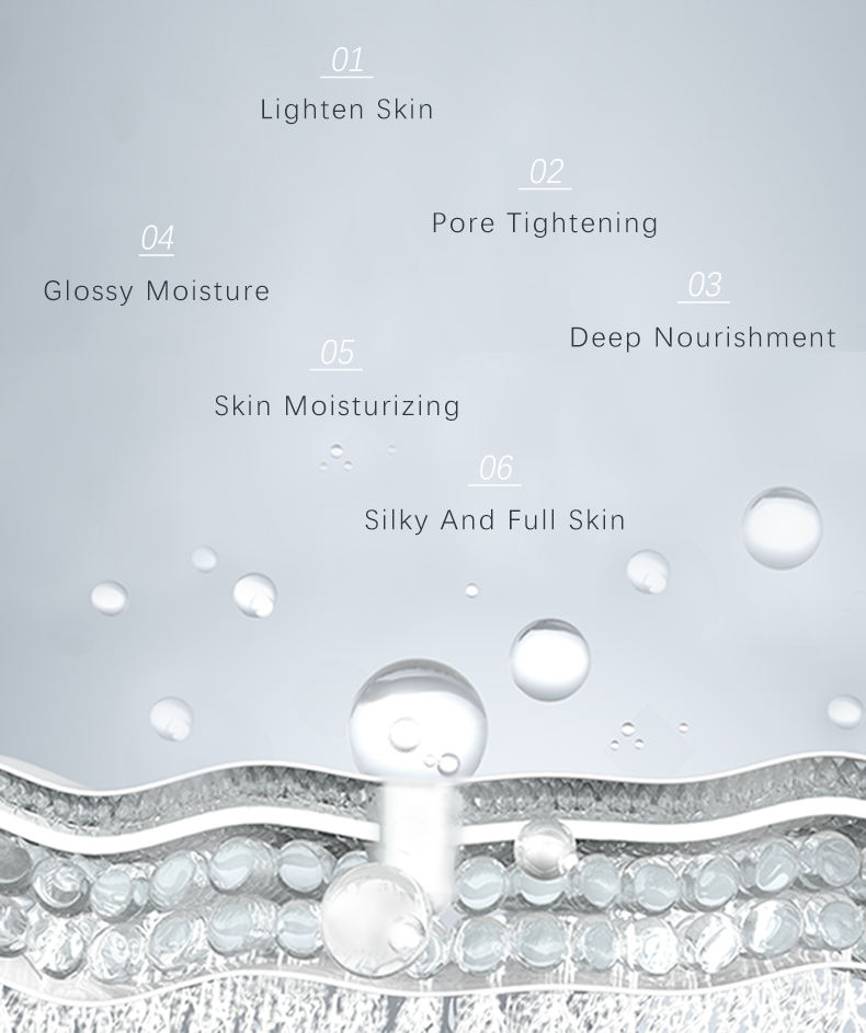 Function:Lighten Skin, Pore Tightening, Deep Nourishment, Glossy Moisture,