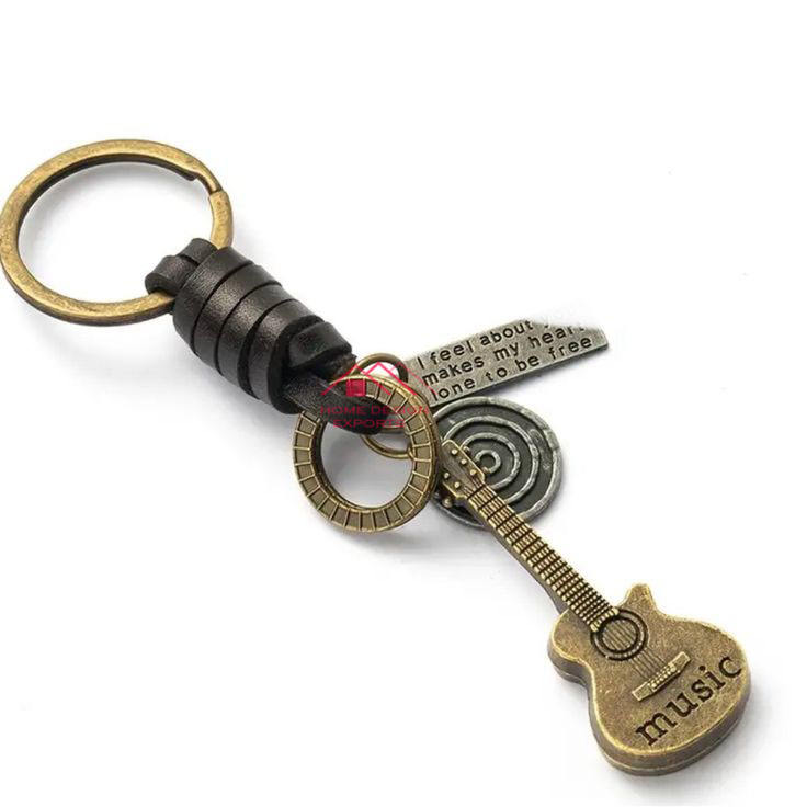2024 vente chaude rétro porte-clés créatif petite guitare porte-clés en cuir tissé peau de vache clé sac à dos pendentif