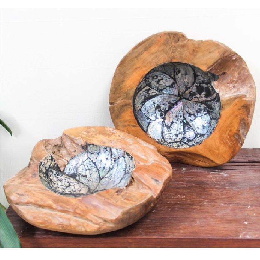 2024 vente chaude bol de racine avec incrustation de nacre, fruit, décoration, utilisation de décor de table de dîner à la maison