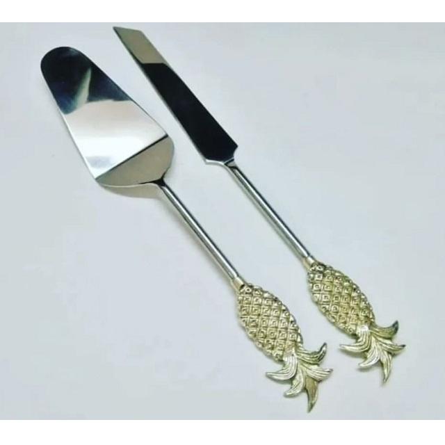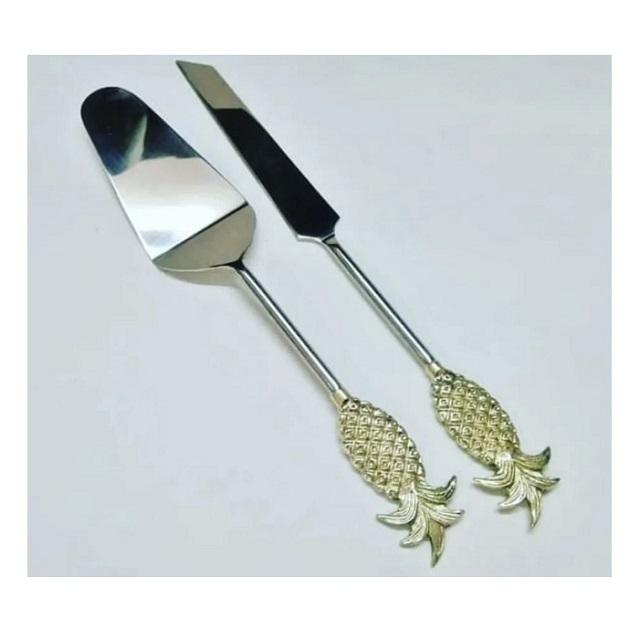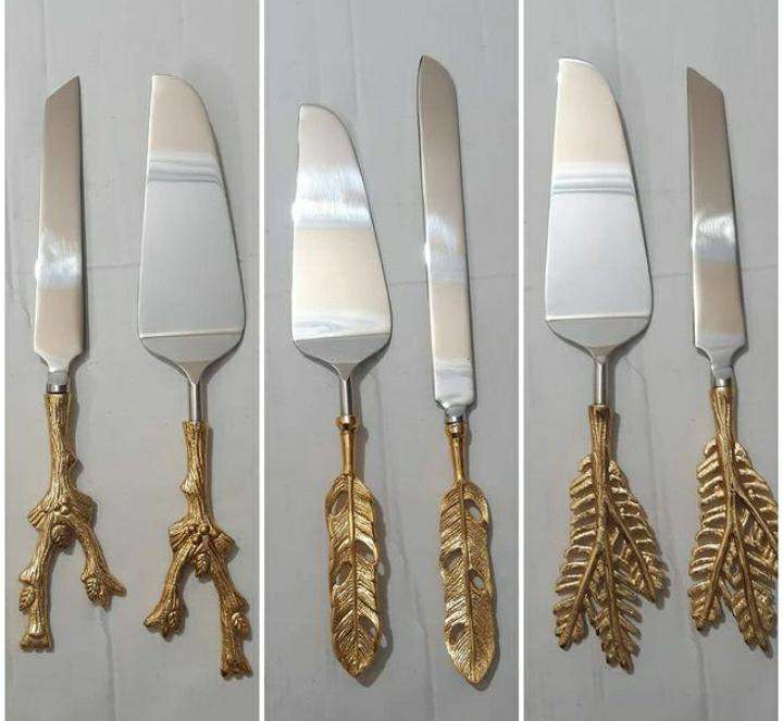 2025 Hot Selling Stainless Steel Cake Server With Leaf Design Brass Handle Wedding Decor Tableware Cake Knife Baking Cake Tools