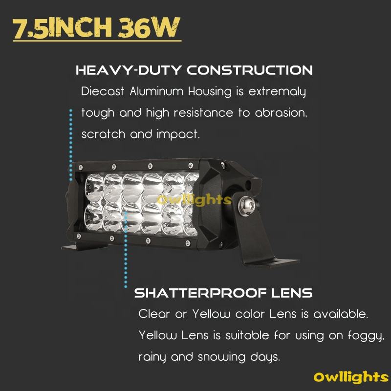 2024 Hotsell voiture LED travail lumière camion barre lumineuse LED 8 pouces 36w barre antibrouillard avec lentille jaune et claire pour camion moto
