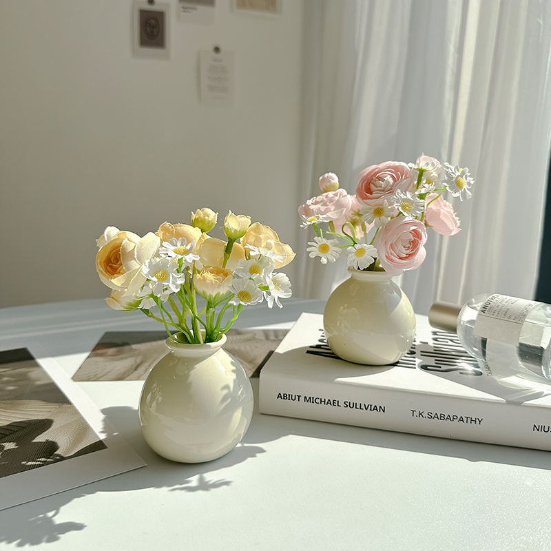 Vase en céramique classique à la mode 2024, vase décoratif moderne pour la maison, vase rond simple et petit pour fleurs