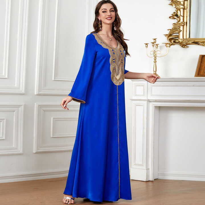 Abaya à perles tendance 2024, motif modeste, vêtements islamiques, caftan marocain, gamis, robe musulmane pour femmes, robe arabe, Dubai musulman