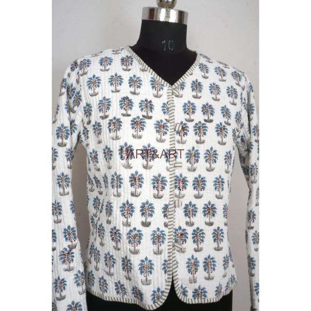 2024 dernière conception veste en coton matelassé pour femmes bloc de main imprimé avec couche de coton doux longueur courte bord brut en vente
