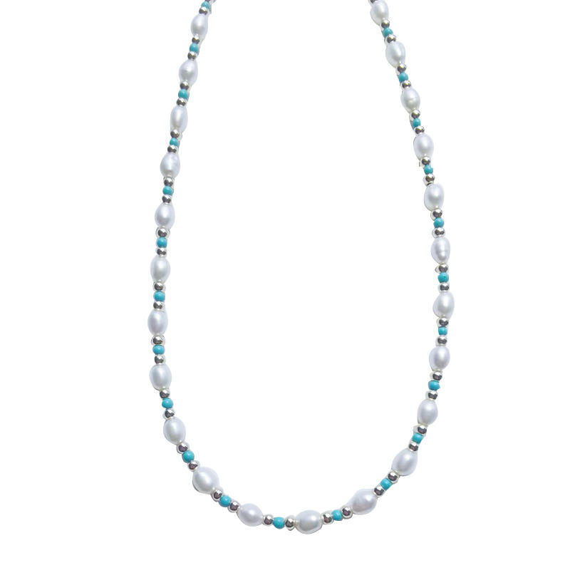 2024 Light Luxury Retro Natural Freshwater Pearls Turquoise Necklace High Quality Small Rice Beads Best Friend Gift New Fashion