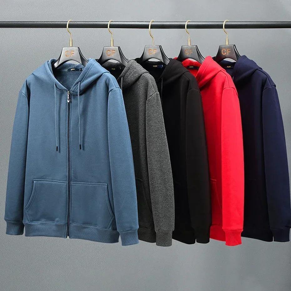 2024 hommes Zip surdimensionné à capuche grande taille polaire à manches longues haut mâle sweat fermeture éclair ample Baggy grande taille Plus uni teint