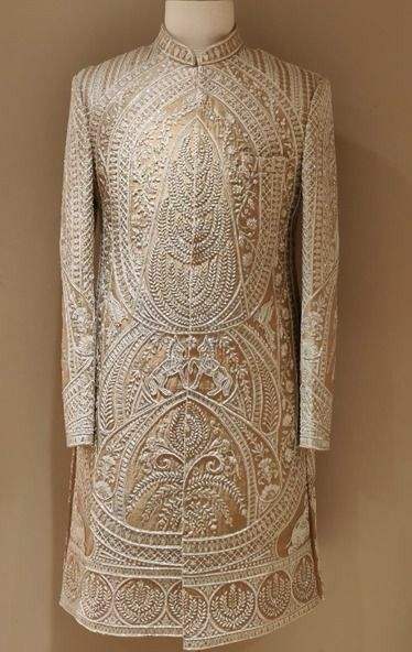 2024 MAGNIFIQUE BRODERIE BLANCHE LOURDE POUR HOMME SHERWANI PANT CHAUSSURE CORRESPONDANTE avec PERLES DE VERRE EN CRISTAL DABKA WORK PLUS TAILLE