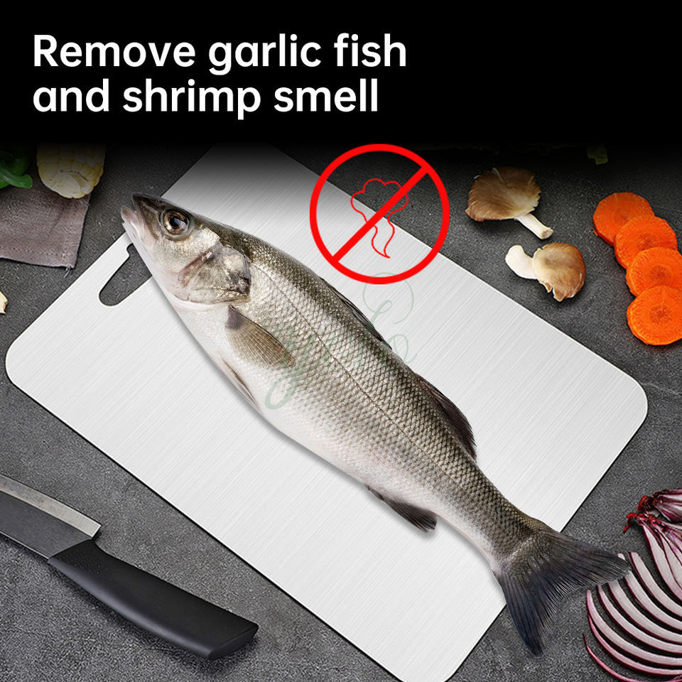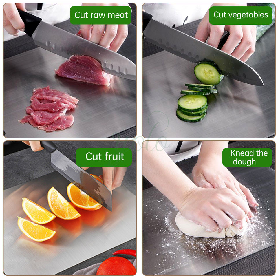 2024 Blocs à découper en métal titane double face de qualité alimentaire multi-usages SUS pur 304 Lot de 3 planches à découper pour la cuisine