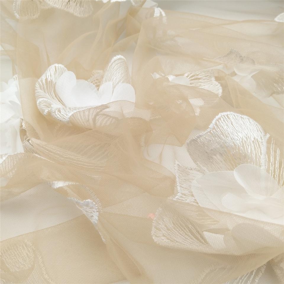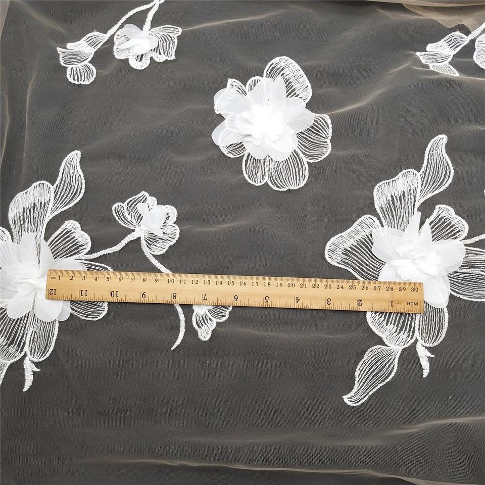 2024 NEW 3D Embroidered Big Organza Flower Applique Tulle Dress Lace Fabric 3D FLORAL Flowers Swiss Voile Mesh Lace Fabric