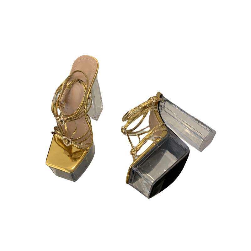 Nouvelles sandales montantes polyvalentes 2024 à semelle cristal, style estival ouvert, inspirées des stars de la mode urbaine, tailles 35-42