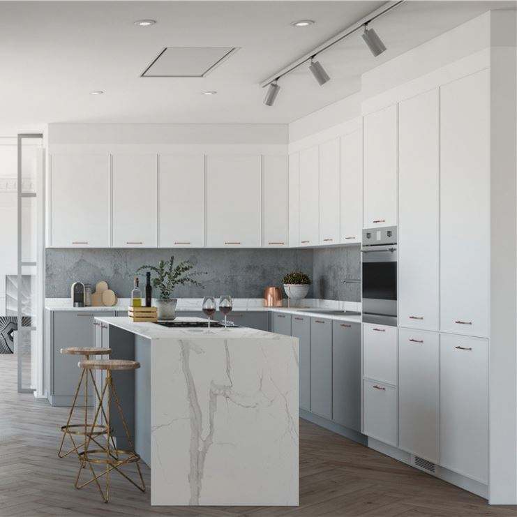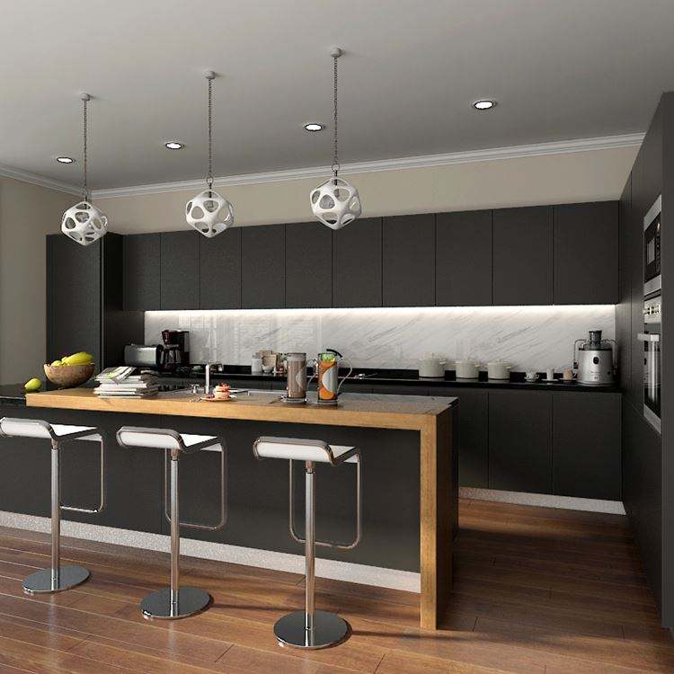 Nouveauté 2024 : Armoires de cuisine modulaires modernes sur mesure, en stratifié/résine/marbre, avec structure en MDF, évier, charnières, robinet, import direct de Chine