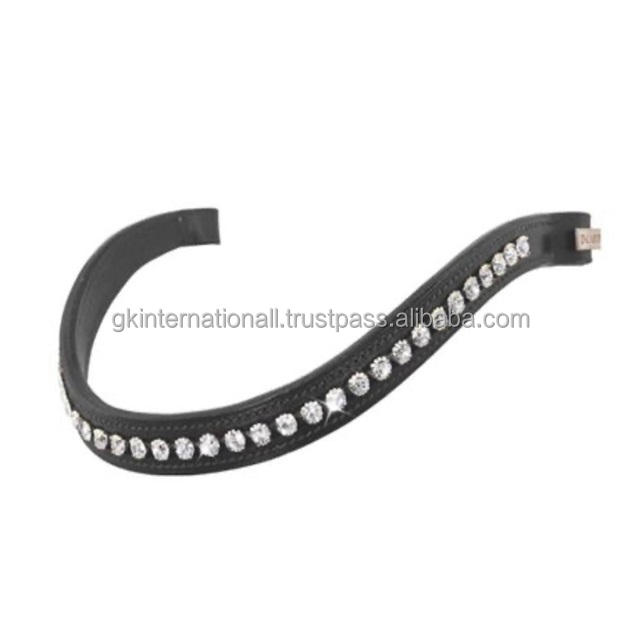 2024 nouvelle arrivée à la main forme incurvée noir ou marron selle cuir cheval front bande avec cristaux ronds multicolores diamante