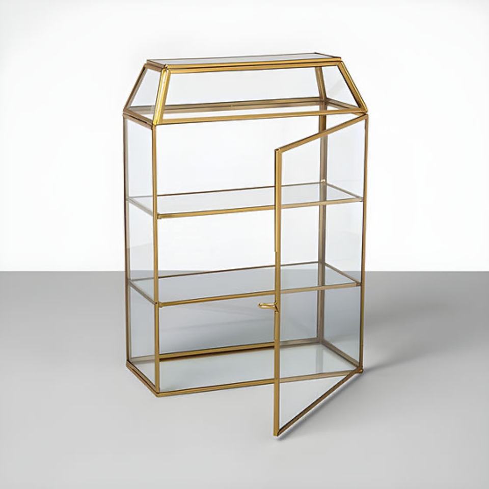 Vente en gros de boîtes de rangement et d'organisation en verre de luxe moderne couleur or rose, mini armoire pour bijoux et cosmétiques