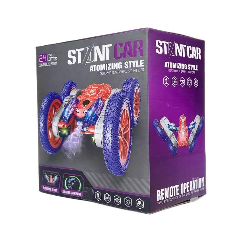 Nouvelle arrivée 2024 Voiture télécommandée à pulvérisation Spiderman Double face Voiture de cascade à dérive avec lumière Télécommande Bras oscillant Jouet de voiture