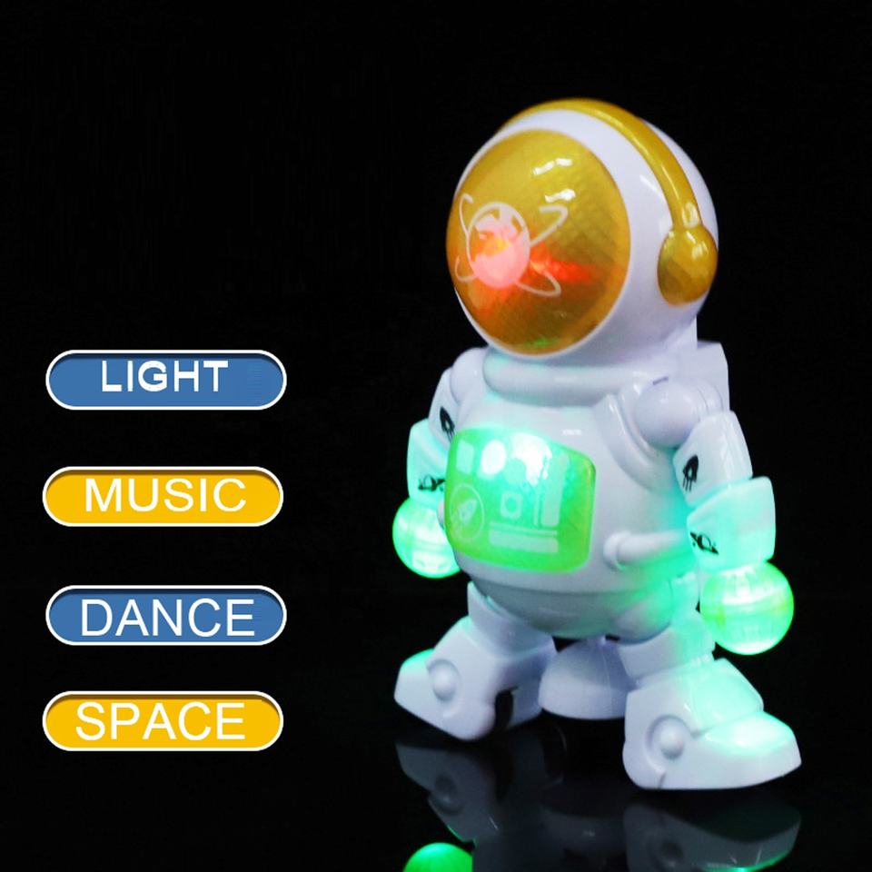 Robot spatial dansant à piles 2024 avec lumière et musique ; Vente chaude pour enfants, robot héros mobile à rotation à 360 degrés