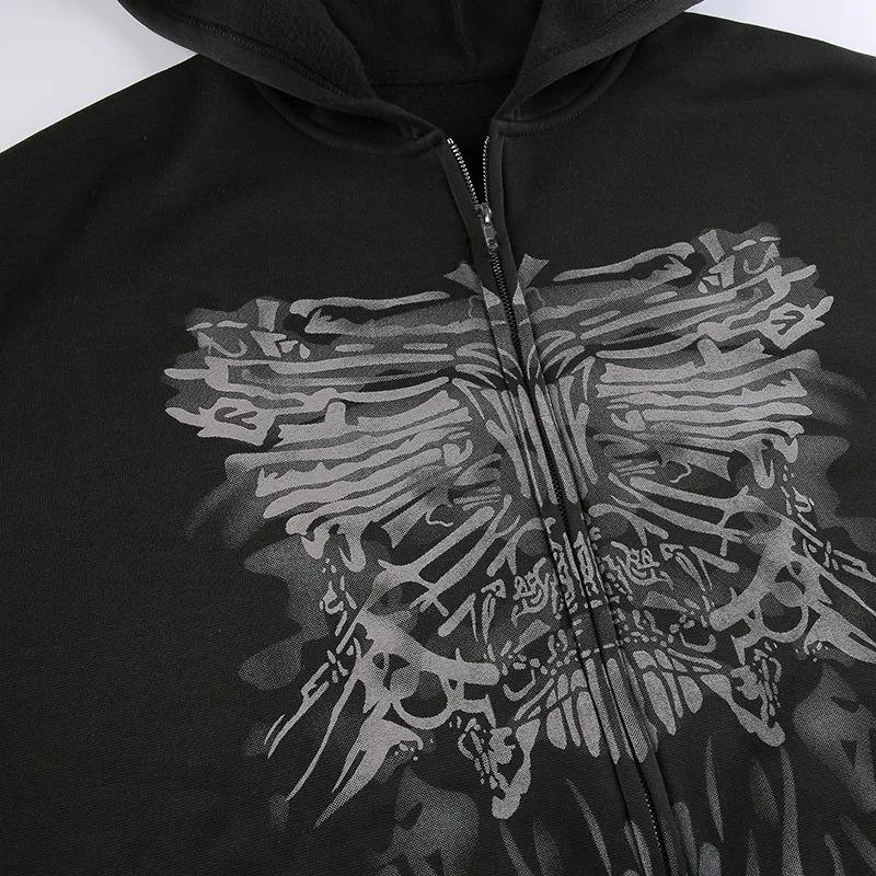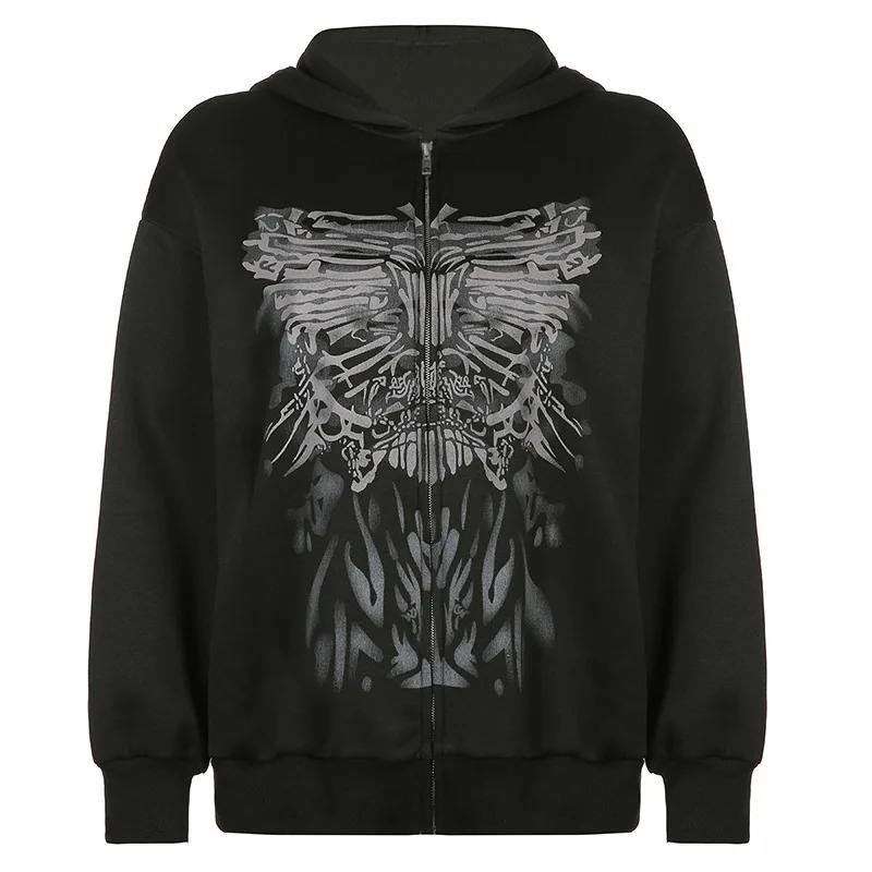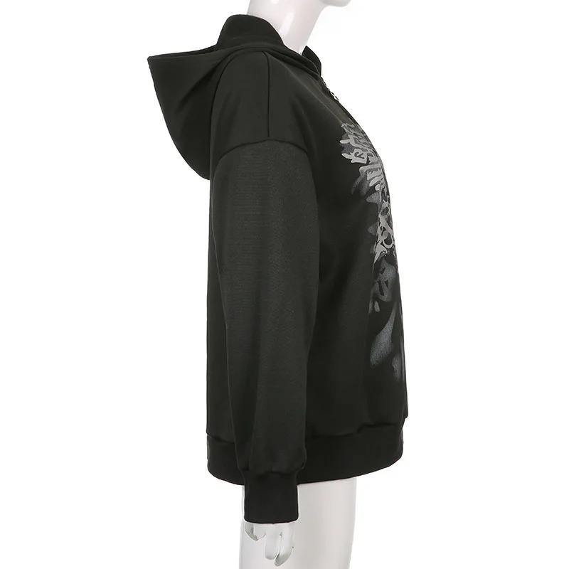 2024 New Black Female Hoodie Zipper American Style Casual Coat 100% Cotton Anti-Shrink Anti-Wrinkle Printed Dark Front