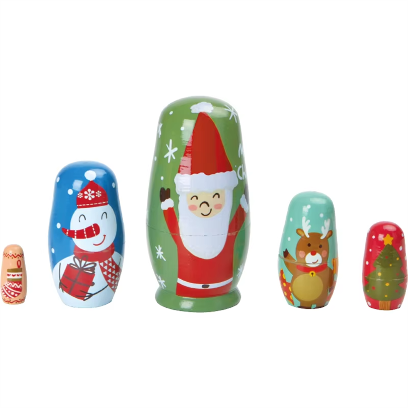 2024 nouvelle conception de noël peinture à la main enfants 5 pièces personnalisé nidification russie poupée jouet jouets en bois
