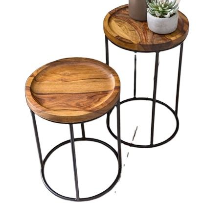 2024 nouvelle Collection bois rond en forme avec fer Table support salon décoratif Table d'appoint cuisine Table à manger thé