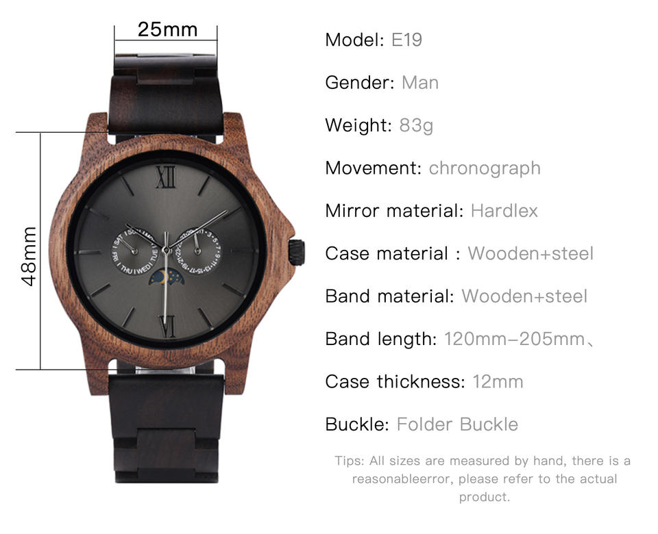 2024 nouveaux hommes à venir multi-fonctionnel lune Phrase conception personnalisée Logo noyer naturel en bois montres à Quartz