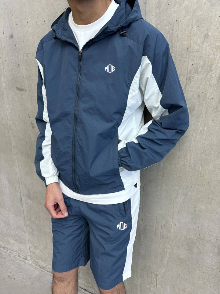 2024 nouveau Logo personnalisé Streetwear 2 pièces à capuche et nylon froissé coupe-vent ensemble court survêtement d'hiver