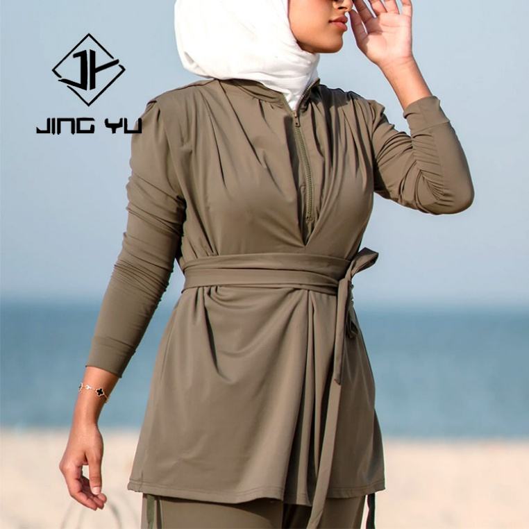 Nouvel ensemble de maillot de bain musulman personnalisé 2024 avec leggings, turban, 3 pièces, de haute qualité, simple et élégant, pour la plage