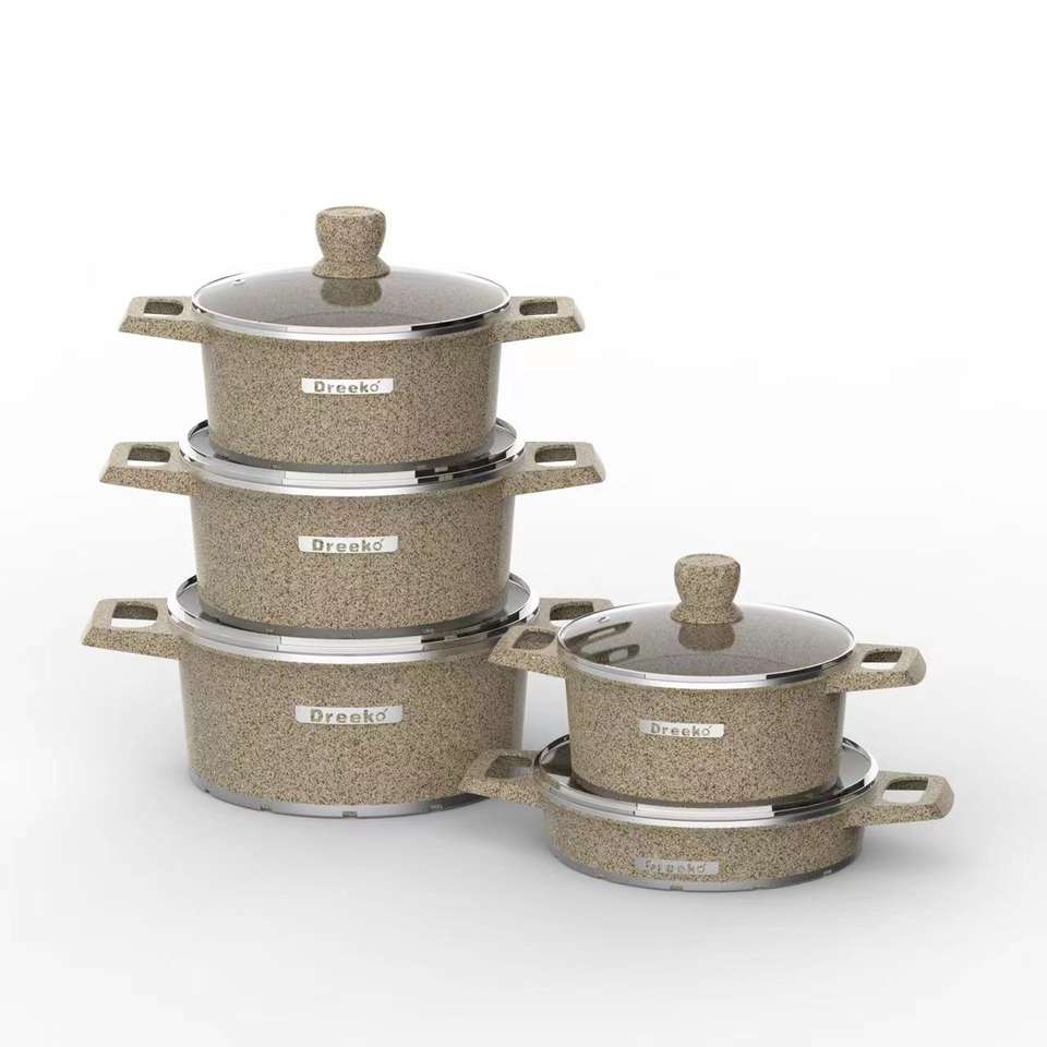 2024 nouveau design 10 pièces casserole coulée sous pression ustensiles de cuisine peu profonds ensemble dubaï vente chaude moins cher cuisinières
