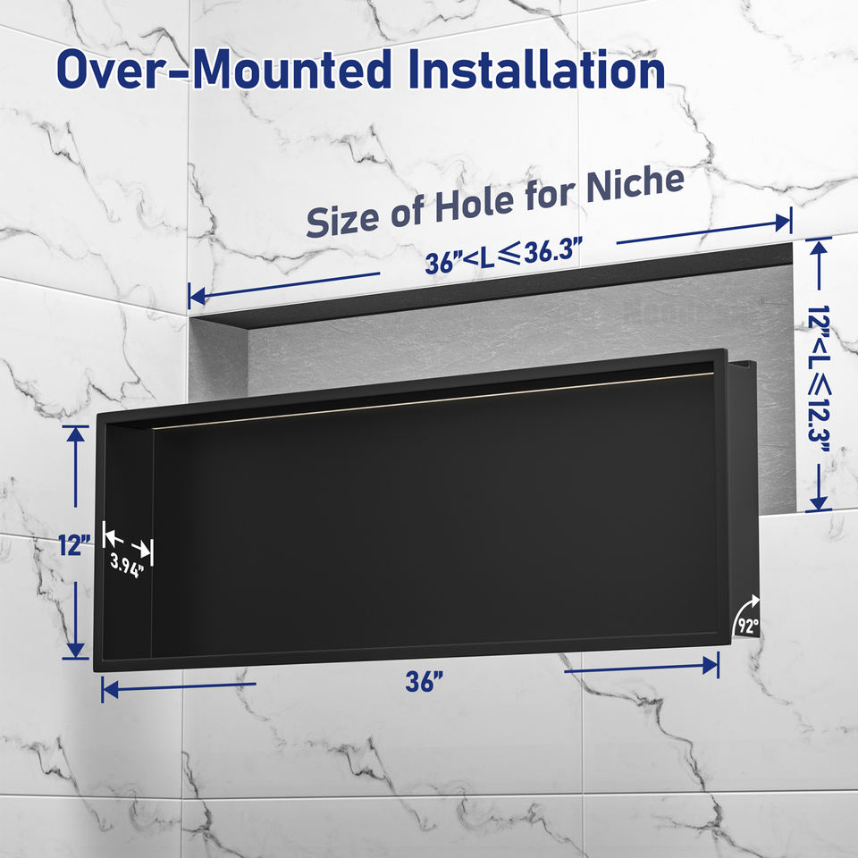 2024 Nouveau design Lumières ambiantes RVB de qualité supérieure encastrées dans une niche de douche en acier inoxydable à faible quantité minimale de commande
