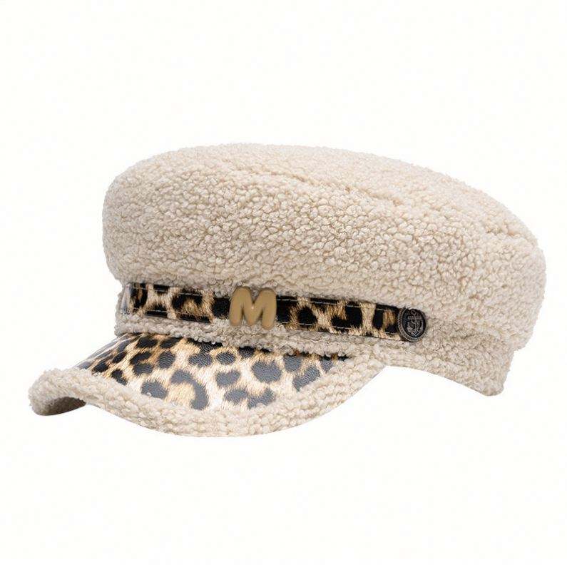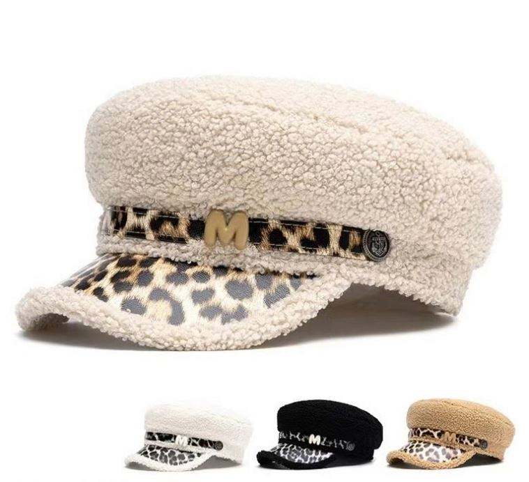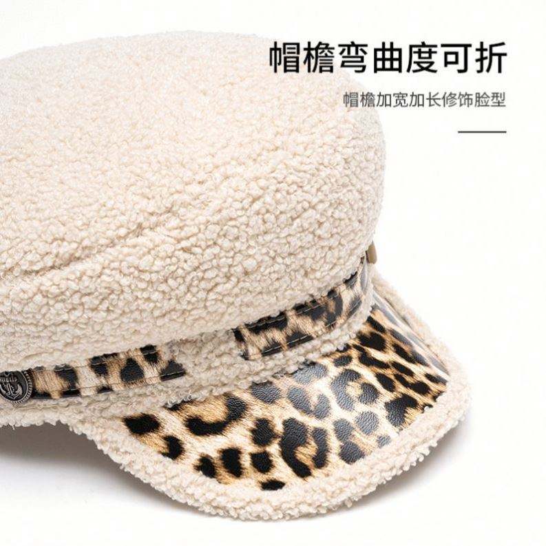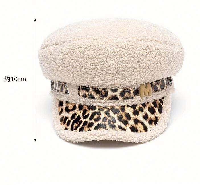 Nouvelle collection automne-hiver 2024, casquette plate en laine d'agneau à imprimé léopard, casquette tendance pour femmes, chapeau béret chaud