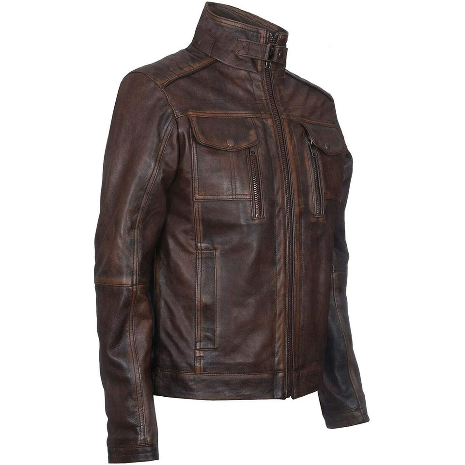 2025 New Fashion Men's Leather Biker Jackets Best Quality with Stand Collar for Winter OEM Wholesale jacket for men