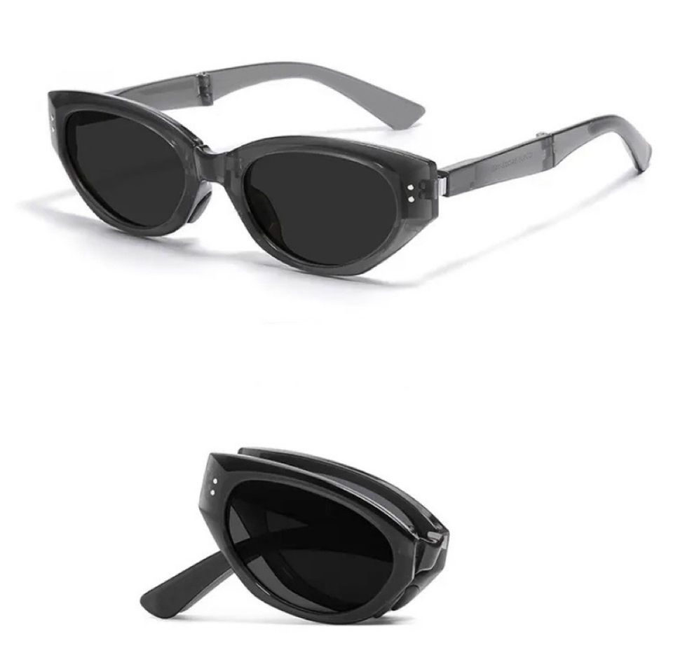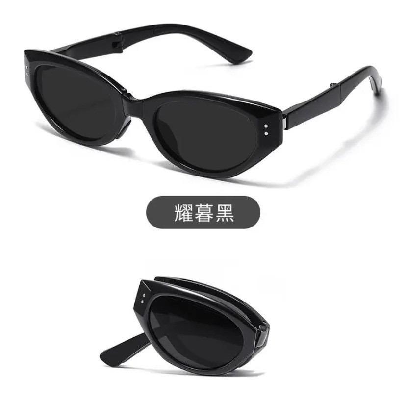 Nouvelles Lunettes de Soleil Pliables Portables PC 2024 UV400 Monture Complète Blanche Unisexe Style Luxe Œil de Chat Européen-Américain