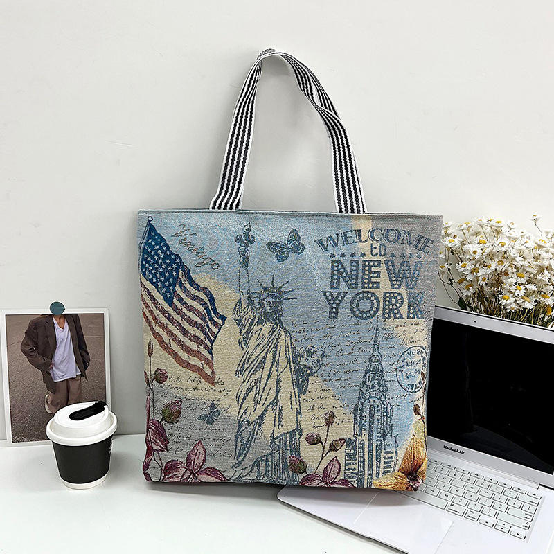 2024 nouveau sac en toile de lin de grande capacité en gros sac de cours de maquillage pour femmes Style rétro sac à bandoulière pour femmes