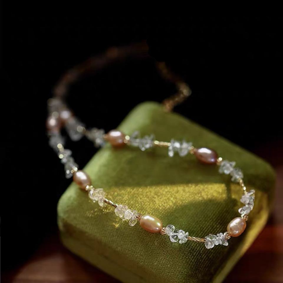 2024 New Luxury White Crystal Collarbone Chain Necklace High-End Freshwater Pearl for Women
