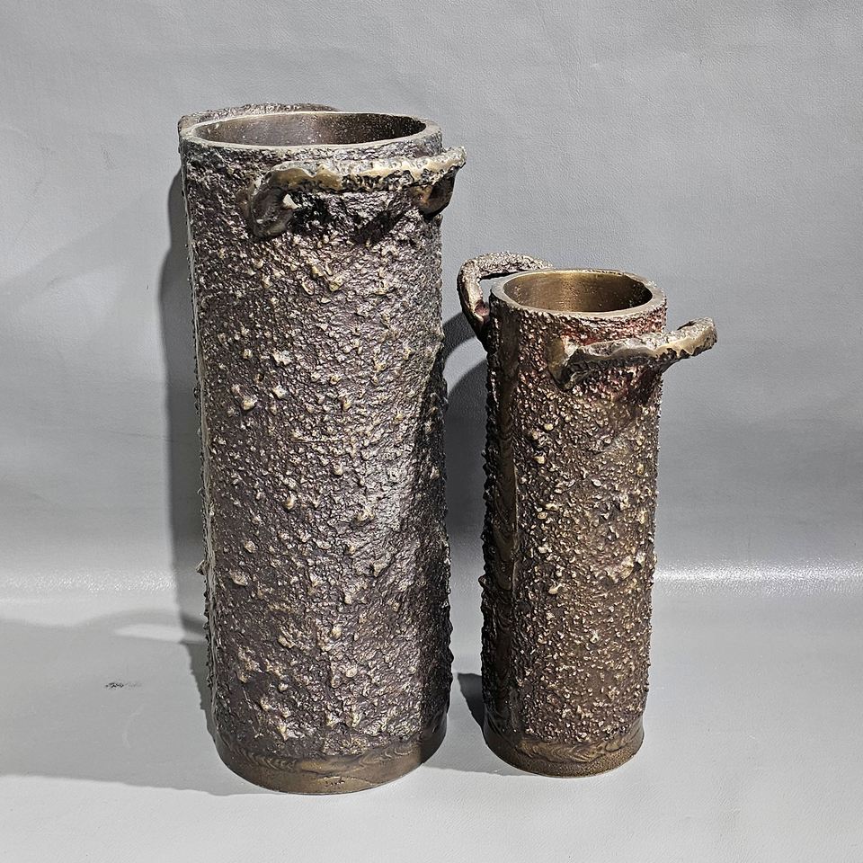 2024 nouveau moderne créatif noir Design ensemble 2 poignées épaissi métal fleur Vase à pois en aluminium sol Vase en gros