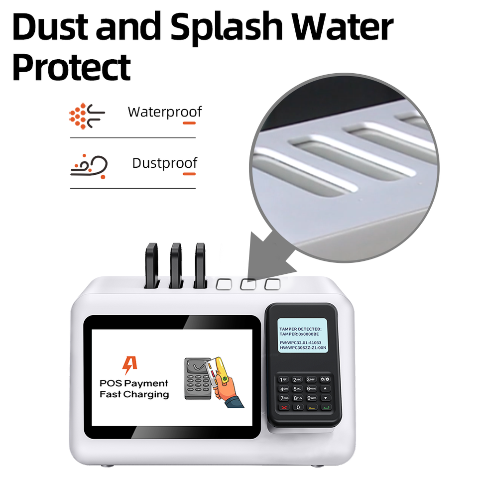 Nom du produit:Station de recharge de batteries externes en location avec terminal de paiement
