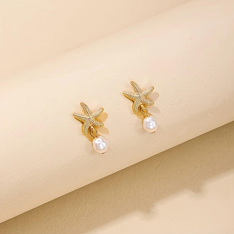 2024 nouveau Style bijoux sens niche tempérament étoile de mer perle boucles d'oreilles goujons oreille accessoires